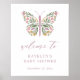 Den här vackra välkomstskylten för babyduschen poster en hand plockade-blommigt-fjäril i lavender, rosa, gyllene gulter och grönt. Elegantens text lyder "Välkommen till" och textmallar ingår för enkel anpassning. Välj mellan olika poster dimensioner - både utskrivningsalternativ och direktnedladdningar finns tillgängliga!