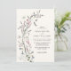 Inbjudan till elegant Wildblomsbröllop. Elegant och snyggt, den här inbjudan till Wildblomsbröllop har en fantastisk, handmålad rosa, lila och blåpastellblommor och sage greenery med en söt vit fjäril som arrangeras i en underbar vintage buquet på en elfenbensbakgrund. I baksidan finns en vacker passande bukett med briden och brudgummens monogram och en valfri bröllop-webbplats.