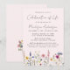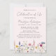 Vänner och familj i inbjudan för att fira livet för din älskade med Eleganten Wildblomma Firande från Lifes begravningsinbjudan ljust rosa. Designen innehåller ett handskrivet svart skript med viktiga händelsedetaljer nedan i serieskrift. En vacker skugga av vildblommor med vattenfärg och bladlinje grund i formgivningen i vibrerande nyanser av rosa, gult, lila, blått och grönt som kontrasterar mot en ljus rosa bakgrund. Vildblommorna är perfekt för vår och sommarminnesevenemang.