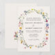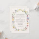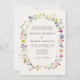 Elegantens bröllopsinbjudningar för blommigt som innehåller uppgifter om bröllop omgivna av en ovala ram av vildblommor och löv i skuggor av rosa, gult, lila, blått och grönt med krämbakgrund. Inbjudan återgår till visning en bukett av färgstarka vilda blommor och grönska. De roliga bröllopsinbjudningarna är perfekt för vår och sommar-bröllop.