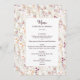 Menyn för den vilda blommans fjärilshus i bröllop har en vit bakgrund och en vacker mängd färgstarka vilda blommor och fjärilar. Konstruktionen är bohemisk, med en vismisk och romantisk känsla.