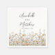 Add a soft, elegant touch to your wedding tables with these nature-inspired wedding napkins. The design features a clean white background for an elegant, minimalist look, with delicate wildflowers in muted pink, yellow, lavender, and blue, accented by gentle green leaves and stems for a fresh, garden-inspired feel.