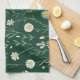 Elegant Wildflower Pattern on Dark Green Kökshandduk