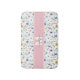 Personalized Elegant Wildflower Monogram Shower Curtain. Add a soft, colorful touch to your bathroom with this elegant design featuring a delicate wildflower pattern in pastel shades of pink, purple, blue, yellow, and green on a white background. At the center, a pink bar stretches across with a white and gray monogram for a graceful, personalized accent. All colors can be changed to match your decor. Perfect for weddings, housewarmings, or birthdays, this floral shower curtain brings a fresh, timeless look to any space.