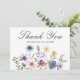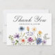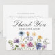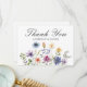 Pretty wildflowers decorate the bottom of this colorful spring wedding thank you flat card. Watercolor floral borders are perfect for a garden ceremony outdoors while flowers are in bloom. Elegant script dances above a beautiful orange, purple, yellow, and blue botanical meadow on this custom card of thanks.