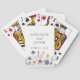 Pretty wildflowers decorate the bottom of this colorful spring wedding favor. Watercolor floral borders are perfect for a garden ceremony outdoors while flowers are in bloom. Elegant script dances above a beautiful orange, purple, yellow, and blue botanical meadow on this custom playing cards deck.