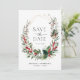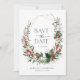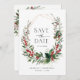 Featuring a delicate gold geometric frame encircling a lush watercolor wreath adorned with vibrant red berries, and greenery, this design combines seasonal charm with timeless elegance, making it ideal for Christmas themed weddings.