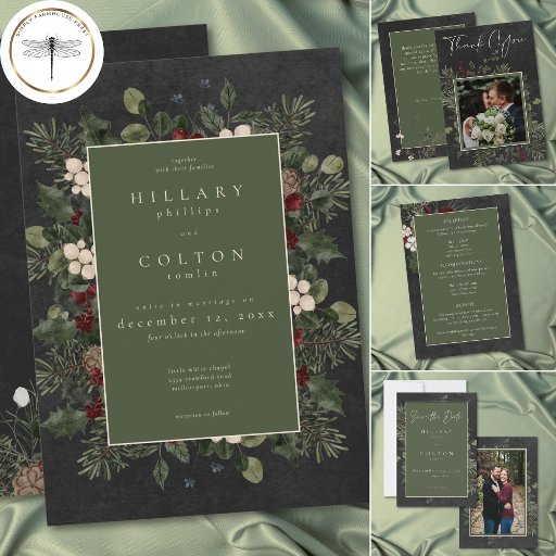 Elegant Winter Berries Pine Black Wedding Photo Spara Datumet