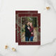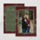 Introducing our enchanting winter wedding photo save the date card, where timeless elegance meets the beauty of the season. The rich burgundy background, softly distressed with white accents, sets a captivating tone for your special day. In the dark sage green text area, your wedding details stand out, surrounded by a delicate cream frame that adds a touch of refinement. Embrace the spirit of winter with a breathtaking frame of lush greenery, featuring holly adorned with rich red berries, mistletoe with its delicate white berries, and the timeless allure of green pine. Created by Simply Farmhouse Press.