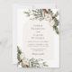 Vintergrön bröllopsinbjudan med en båge ram av vattenfärgade evergreens. Anpassa med din information. Klicka på "klicka för att anpassa ytterligare" om du vill ändra teckensnittet stil, storlek eller färg.