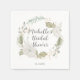 Lägg till den här eleganten och den moderna Winter White-Blommigten Watercolor Grey Möhippa Cocktail Napkins i händelsens decor! Denna utformning visar att ro, gräs och eukalyptus i vit, grönt och guld glitter utsöndras i blommigt. Skript och blockskrivning visas. Du kan ändra all text och välja olika alternativ för färg.