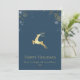 En elegant mörk blått affärskort och helgdag i guld för använda av småföretag. Redigera helt enkelt logotypen och företaget namn innan du köper och leverera lite helgdag under vintern till dina MVP-kunder och MVP-kunder! Det finns en hoppande hjort i guld med antlers med en snöflinga i guld och silver mot en djup säsong-blått.