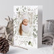Elegant-helgdag med lodräts foto inramat i vitt med en bakgrund av vattenfärgade snöbär, holly, eukalyptus löv och lush sage grönt foliage. Anpassa framsidan av det botaniska julfotokortet med en anpassningsbar hälsning och din familj namn i en grönt. Insidan av kortet visningar ditt anpassningsbar-meddelande eller lämnar det tomt för att skriva ditt eget.
