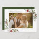 Sprid lite helgdag glädje med det här fotojulkortet som har en ram-design av julgrädden med Poinsettia, julbär och vit ros.