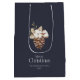 Öka din presenttid ge med den här eleganten vinter-temade presentväskan. Den har en sofistikerad utformning av pinekoner, evergreen grenar och vintern bladning på djup marin bakgrund och ger en varm och rustisk charm till alla nuvarande. Perfekt för julhelgen. Den här väskan tillför en snyggt och en snygg beröring till dina tankfulla gåvor.