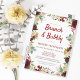 Detta söta vykort och vykort från inbjudningskort för möhippan har en elegant boho blommigt bouquet med accenter från röd ros och elfenben ro med botaniska löv och bär. Söt och chic. Den här brunch- och bubbelduschinbjudan är perfekt för en Fall Möhippa- eller Winter-Möhippa