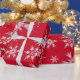 Den här designen har elegant, roligt och festligt snöflingor i röd bakgrund.