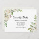 Den här eleganten är bröllop spara datum inbjudan till vinter-vita peony en perfekt till ett destinationsbröllop. Konstruktionen har en bukett med handmålade burgundar, grönt och brunt löv med färska tittar vita ponnyer, inspirerande blåsor och naturskönhet.