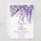Elegant, modern, wisteri, förlovning, lavendel, vattenfärg, lila blommigt, elegant bröllop sparar datumet. Vattenfärgblommor. Unik, handmålad teckning av konstnären Monika Howarth. Du kan anpassa den med dina detaljer.
