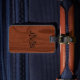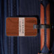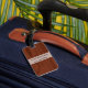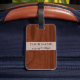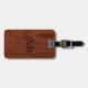 Sofistikerad monogrammed initial bagagemärkre med bakgrund av luxe korn för mahognyfauxträ. Monogrammed flott 3 märka med sina initialer brev i svart beklär på. Både stilsortsstil och färg kan ändras. Baksida har samma wood look med den beställnings- textmallen som i fall att tillfogar namn och telefonnummer eller annan information om kontakt av borttappadt bagage under semester- eller affärsresa. Beställnings- lantlig bagagemärkregåva för honom eller henne.