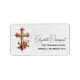 Adressetiketter med en söt illustration med en enkel kor av trä täckt med rosa blommor och löv av grönt.