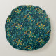 Elegant Yellow and Teal Floral Pattern Design Rund Kudde