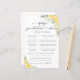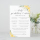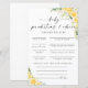 Elegant Yellow Baby Shower Predictions Card is a sweet and interactive keepsake designed with soft yellow tones that bring warmth, joy, and charm to your baby shower celebration. This beautifully styled card invites guests to share their fun predictions about the baby’s arrival—such as birth date, weight, eye color, and more—creating a meaningful memory for the parents-to-be. Perfect for spring, garden, neutral, or modern baby shower themes, it coordinates seamlessly with matching yellow shower stationery for a cohesive and polished event.