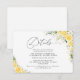Elegant Yellow Wedding Details Card is a beautifully designed enclosure card featuring soft yellow tones that symbolize joy, warmth, and celebration. With clean typography and an organized layout, this details card clearly presents important wedding information such as the schedule, venue, accommodations, or dress code. Perfect for classic, garden, or modern weddings, it coordinates seamlessly with the rest of the yellow wedding stationery suite while adding a polished and thoughtful touch to your invitation set.