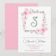 Eleganta 3-års inbjudningar Blommig Rosa kalligrafi typografi feminin klassisk akvarell botanisk firande modern