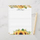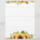 Elegant personligt anpassat linjerat brevpapper med akvarellmålade solrosarrangemang.
