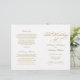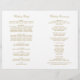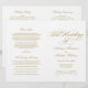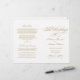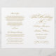 Storslagen gammal guldkalligrafi stavas "The Wedding Of" med svepande utsmyckad stil över detta eleganta ceremoniprogram. Dekorativa rullande utsmyckningar i varmt guld inramar designen mot en ren vit bakgrund för ett tidlöst, formellt uttryck. De inre sidorna kan anpassas helt efter ditt bröllagssällskap, ceremonieordning och ett personligt tackmeddelande på baksidan. Programmen trycks på papper med textvikt och levereras platt, och kräver en enkel mittveckning.