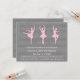 För födelsedagsflickan som brinner för balett eller dans är denna balettinspirerade inbjudan perfekt för henne. Denna eleganta och klassiska design har pastellrosa silhuetter av balettflickor som dansar balett. Den bildar en fin kontrast till den grå notbladbakgrunden som är från det klassiska balettstycket Svansjön. Den är perfekt för alla dansevenemang, balettfester, uppträdanden eller shower. Anpassa enkelt med dina festdetaljer.