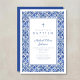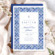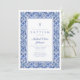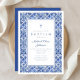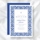 Elegant blå kakel religiöst kors pojke dop inbjudan.