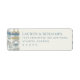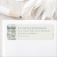 Denna returadressetikett har en ren, minimalistisk design med en texturerad bakgrund och en abstrakt mönstrad ram i mjuka blå, grå och beige nyanser. Layouten är vertikal med centrerad text i ett serif-teckensnitt som ger en formell men ändå tilltalande känsla, i harmoni med den dämpade färgpaletten av ljusgrått och vitt. Den övergripande stilen utstrålar en underdriftad elegans och sofistikation, vilket gör den perfekt för formella tillfällen. Dess moderna estetik fokuserar på enkelhet och klarhet, idealisk för dem som söker en förfinad touch till sin korrespondens.