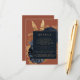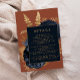 Detta eleganta bröllopsdetaljkort har en frodig, romantisk blomsterbukett i marinblått med guld falsk folie och glitterlövverk på en rost- eller bränd orange bakgrund. Anpassa den guld färgade texten i snygga typsnitt på en marinblå rektangel. Baksidan av kortet är enfärgat rost.