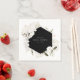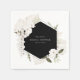 Eleganta bohemiska bröllopsdusch servetter av papper. Vita akvarellblommor och delikat grön lövverk svart geometrisk ram.