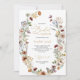 Vår charmanta och redigerbara bröllopsdusch-inbjudan har en förtjusande vildblomsdesign som utstrålar en rustik boho-stil, som påminner om ömtåliga pressade blommor. Färgpaletten med tan, brunt, rost, terrakotta och vitt ger inbjudan en varm och jordnära känsla, vilket gör den idealisk för höst-, sommar- och vårbröllopsduschar. Texten är en vacker blandning av kalligrafisk skrift och modern typografi, vilket skapar en elegant och trendig estetik som sömlöst kompletterar vildblomsdesignen.