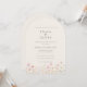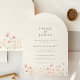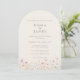 Fira din kärlekshistoria med denna eleganta vildblomsterbåge bröllopsinbjudan, med en mjuk äng av ömtåliga pastellblommor och en förfinad välvd silhuett. Designad med tidlös typografi i varma taupe-nyanser på en romantisk elfenbensvit bakgrund, förenar denna inbjudan klassisk sofistikation med modern trädgårdscharm.