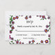 Detta eleganta botaniska bröllop RSVP-kort är perfekt för ett modernt blomsterbröllop. Den enkla designen har en botanisk trädgård med lila och magenta rosor och gröna blad med elegant svart typografi på vit bakgrund.