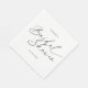 Gör din bröllopsfest till en elegant tillställning med dessa fantastiska Elegant Handskriven Bröllopsservetter. Dessa enkla men sofistikerade servetter är det perfekta sättet att förhöja din bröllopsdekor. Den handskrivna teckensnittet ger en modern, stilfull känsla medan det svart-vita färgschemat håller allt minimalistiskt och chic. Dina gäster kommer att älska det eleganta sättet som dessa servetter knyter samman din bröllopsfesttema. Perfekt för bruden som vill att hennes fest ska vara enkel, stilfull och oförglömlig. Det handskrivna teckensnittet lägger till personlighet och karaktär till din dekor och dina fotografier. Ett enkelt sätt att göra din bröllopstillställning extra speciell utan att överdriva. Ge dina gäster en smak