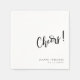 Fira din speciella dag med dessa eleganta minimalistiska bröllopsservetter med en modern handskriven “Cheers!”-design. Personliga med parets namn och bröllopsdatum, dessa anpassade servetter är perfekta för bröllopsmottagningar, cocktailtimme, förlovningsfester och brudshower. En tidlös vit bakgrund gör dem lätta att matcha med valfritt bröllopstema, från modernt och klassiskt till minimalistiskt och chic.