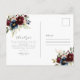 Eleganta burgunderröda blomsterarrangemang och grö vykort