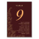 Eleganta Burgundy Subtila Blommiga Mönster Namn Bordsnummer
