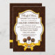 © 2013 Socialite Designs. Vår eleganta bakelseinbjudan har en chokladbrun damaskbakgrund, en vacker textbanner med guld och brunt, tre tårpinnar och ett falskt guld satinband och bow design. Om du behöver HJÄLP med att anpassa denna storslagna öppningsinbjudan för ditt evenemang, vänligen kontakta Socialite Designs med dina krav.