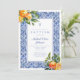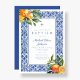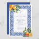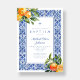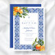 Eleganta Citrus Blå Kakel Religiös Pojke Dop Inbjudan.