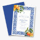 Eleganta Citrus Blå Kakel Religiös Pojke Dop Inbjudningar