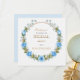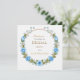 Ett mjukt akvarell tackkort med en krans av dammiga blå rosor och gips - perfekt för att skicka hjärtlig tacksamhet efter er fest.
