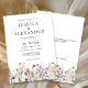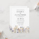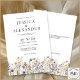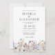 Denna eleganta dammiga blå vildblommor vita bröllopsinbjudan visar känsliga akvarellvildblommor i nyanser av dammig blå, lila och gul på en vit bakgrund, kompletterad med modern typografi i grått. Den är helt anpassningsbar med parets namn och bröllopsdetaljer. Den formella designen och formuleringen kommer att lägga till en touch av elegans till din bröllopsfirande.