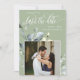 Denna spara-datum-inbjudan har eleganta vattenfärgarrangemang med grönska och löv, vacker kalligrafi och en enkel typsnitt med serifer samt en fyrkantig fotofram på en dammig grön bakgrund och QR-kod för en ren, minimalistisk och modern look, vilket är ett vackert sätt att informera om din kommande bröllop. Meddela din familj och vänner att ni gifter er med denna inbjudan och lägg till en personlig touch med vackra bilder på dig och din snart blivande bättre hälft. Enkelheten i denna design lägger till en touch av elegans till din bröllop. Den fungerar bra med många bröllopsteman och är definitivt ett bra tillägg till din bröllop. Anpassa bara namn och formulering i några enkla steg och anpassa inbjudningskortet med din foto av det lyckliga paret och byt ut QR-koden mot din egen.