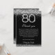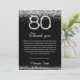 Fira en milstolpe med vårt stilrena 80-årsgratulationskort i silver och svart. Med gnistrande diamontaccent är detta eleganta kort perfekt för att uttrycka tacksamhet efter en 80-årsfest. Anpassa med hjärtliga födelsedagsmeddelanden för att tacka gästerna för deras kärlek och presenter. Tryckt på premiumpapper är det en chic souvenir för en Glad 80-årsdag.